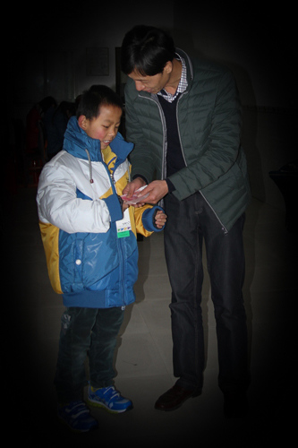 大乌江镇箐口村李益高只有8岁,是一名特殊的留守儿童,其父现正在服刑,母亲在他一岁时就离家出走,从此杳无音讯,留下小益高跟奶奶相依为命,去年奶奶过世之后,小益高只能每月轮流寄养在亲戚家,但小益高从小孝敬长辈、听话懂事,而且学习成绩十分优秀。在村委会看到李益高时,他只穿了一件毛衣和薄的外套抵御寒冬。林先生了解小益高的情况后,当即决定拿出5000元交给村支书娄方劲作为小益高的学习生活费用,并当场为小益高换上在临街为他购买的冬衣、冬鞋、书包等生活用品。林先生表示待李益高的父亲刑满出狱后,可到自己的公司打工谋生。