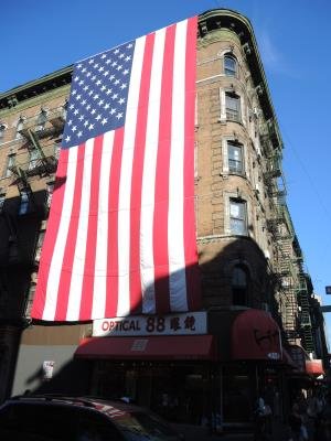悼念911事件13周年 纽约华埠现巨型美国国旗(图)