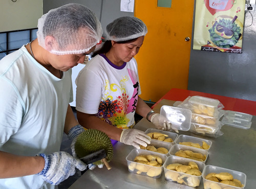 1人负责果园供应及生产,另外2人则掌握网络营销,公司的产品除了榴莲,也销售文冬特产姜及一些本地水果,包括百香果、木瓜及波罗蜜果肉,以及水果衍生品如果干、意式冰淇林等等。