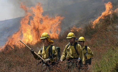 有超过700位消防员和其他救援人员前往扑灭这场名为“Blue Cut”的野火,目前两位消防员被呛伤,但仍未能控制火势。