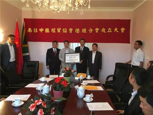 中国侨网10月20日电 据南非华人网报道,当地时间10月17日,南非中国经贸协会德班分会成立仪式在中国驻德班总领馆举行。驻德班总领事王建州、驻南非使馆经商参赞荣延松出席并讲话。南非中国经贸协会会长程军、常务副会长万军、秘书长韦冬泽和总会部分会员单位负责人及夸纳省10家中资企业负责人出席活动。