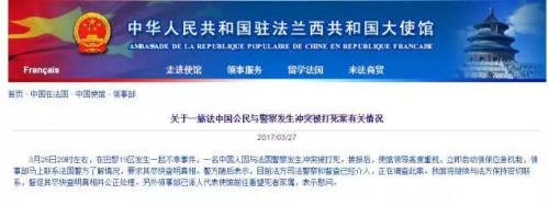 3月26日20时左右,在巴黎19区发生一起不幸事件,一名中国人因与法国警察发生冲突被打死。