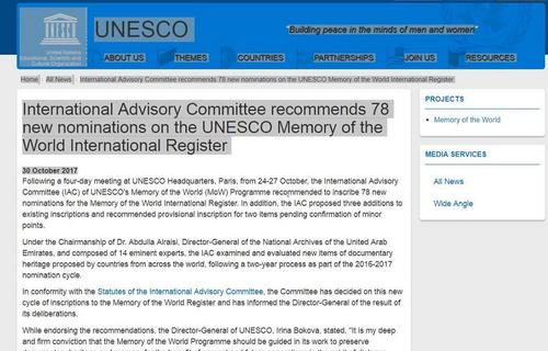 《世界记忆名录》是联合国教科文组织《世界记忆计划》的重要组成部分,世界记忆计划是联合国教科文组织于1992年启动的一个文献保护项目。其目的是对世界范围内正在逐渐老化、损毁、消失的文献记录,通过国际合作与使用最佳技术手段进行抢救,从而使人类的记忆更加完整。目前我国已经有十个项目入选,其中《南京大屠杀档案》于2015年入选《世界记忆名录》。(央视记者 江华)