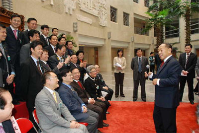 中国侨网消息:中国外交部长李肇星3月14日在外交部会见了应全国政协十届五次会议大会秘书处邀请列席政协会议的海外华侨华人代表。24名代表来自世界五大洲的14个国家,有当地知名侨领,商界巨贾,也有专家学者和科技精英,其中最年长者73岁。
