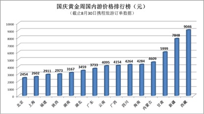 从携程平台2017年国庆黄金周跟团游、自由行产品预订情况和人均价格看,在国庆人气排名前15名的热门目的地线路中,90%的平均价格都不高于iPhoneX64GB版本的8388元。