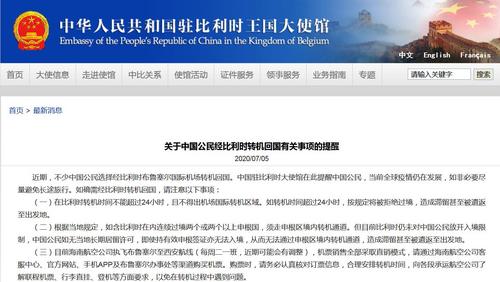 中国侨网7月5日电 据中国驻比利时大使馆网站消息,近期,不少中国公民选择经比利时布鲁塞尔国际机场转机回国。中国驻比利时大使馆在此提醒中国公民,当前全球疫情仍在发展,如非必要尽量避免长途旅行。如确需经比利时转机回国,请注意以下事项: