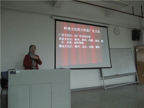 华文学院的另一位老师刘潇潇给营员们带来了《岭南文化》知识互动讲座,内容涉及岭南地区(包括广东、广西、港澳地区)文化的各个方面,包括饮食、工艺品、建筑、音乐、粤剧、民俗等方面的内容。整场讲座,刘老师生动的讲解,配合图片和精彩的视频,一幅岭南文化风貌图徐徐向营员展开,一方有着千年历史积韵的土地在新时代阳光的普照下,欣欣向荣,活力迸发。讲座过程中,老师与营员互动中,把《暨南大学纪念册》作为奖品送给营员,让他们能够对暨南大学可以有更深的了解。对于营员提出了的问题,刘老师耐心地给予回答。老师与营员积极互动,气氛非常热烈融洽。