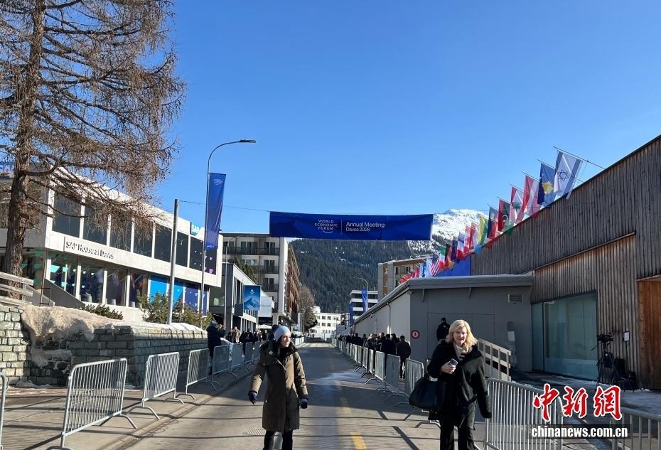 当地时间1月19日,世界经济论坛2026年年会将在瑞士东部小镇达沃斯拉开帷幕。本届年会聚焦“对话的精神”主题,汇聚了来自全球130多个国家和地区的近3000名各界参会者。图为参会代表经过悬挂旗帜的会议中心。 中新社记者 马秀秀 摄