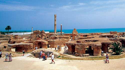 从公元前6世纪起,迦太基发展成为覆盖地中海沿岸大部分地区的贸易帝国,孕育了灿烂的文明。公元前146年,迦太基被古罗马灭亡,新的罗马-迦太基城在原来的废墟上重建起来,成为仅次于意大利罗马的第二大城。现在的古城遗址主要是这一时期的建筑。