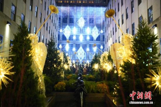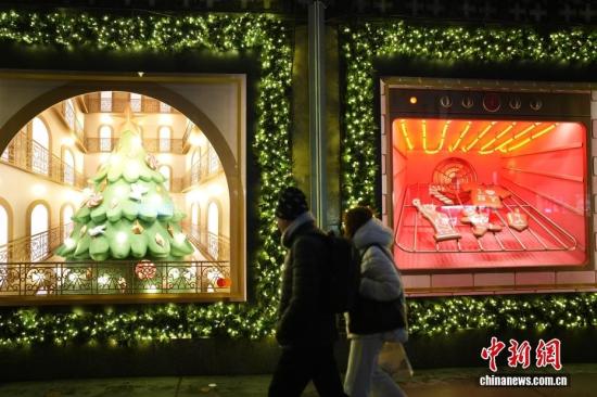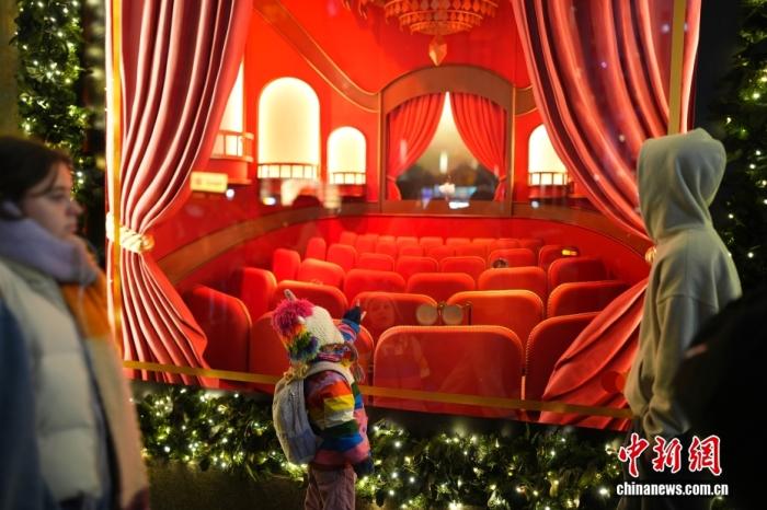 当地时间11月30日,随着美国假日购物季的到来,纽约各大百货商场的节日橱窗成为街头一景。图为第五大道百货公司的节日橱窗吸引路人目光。中新社记者 廖攀 摄