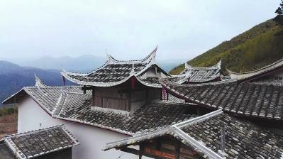 黄新强介绍说,曹山寺整个建筑群屋顶组合似天衣无缝一气呵成,分三级互相呼应的正、反、合接力衔接,形成一个整体严谨的原始图腾。这种屋顶和支撑边角的有机完美组合,极具特色的建筑顶部造型,在省内罕见,国内也极少报道过。