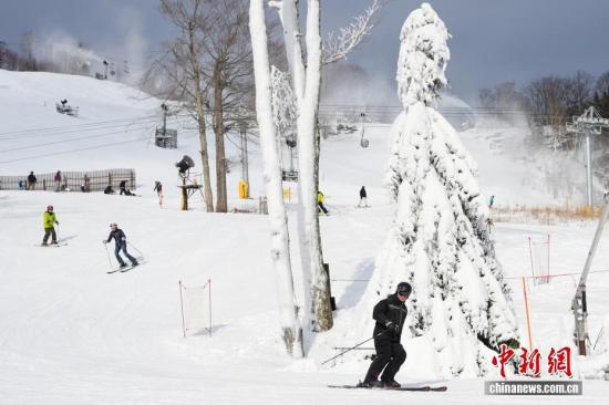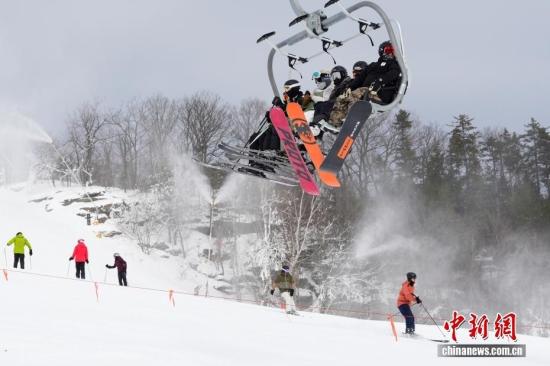 当地时间12月7日,美国纽约州亨特山滑雪场一边开放营业一边进行造雪作业。12月以来,美国东北部进入雪上运动季,域内滑雪场雪道陆续开放。中新社记者 廖攀 摄