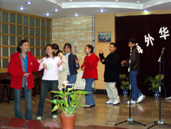 摄影/姚萍 全体营员合影 营员与实验学校的学生进行交谈 马来西亚营员在联谊会上表演节目 老挝营员在联欢会上表演节目 实验学校的学生向营员介绍该校情况 柬埔寨营员向实验学校校长彭玮(左二) 赠送礼物 泰国15岁的营员陈集(左一)在广州学了一 马来西亚“2001海外华校写作佳作奖”年的汉语,他希望将来能当一名外交官 获得者唐晓涵(16岁) 马来西亚全国汉语演讲比赛获奖者、 营员在欣赏中国茶艺最佳评论员吴淑珊(17岁) 营员在品尝中国茶 营员在欣赏中国的手工艺品