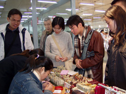 营员在品尝中国茶 营员在欣赏中国的手工艺品