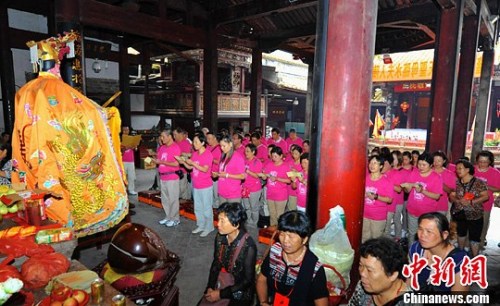 中新社福建宁德1月3日电 (记者 叶茂)福建省宁德市古田县临水宫祖庙住持黄光辉3日告诉中新社记者,每年到祖庙进香祈福的台湾信众越来越多,2018年有登记的台湾团队就有120多个,多则百余人,少则50多人。