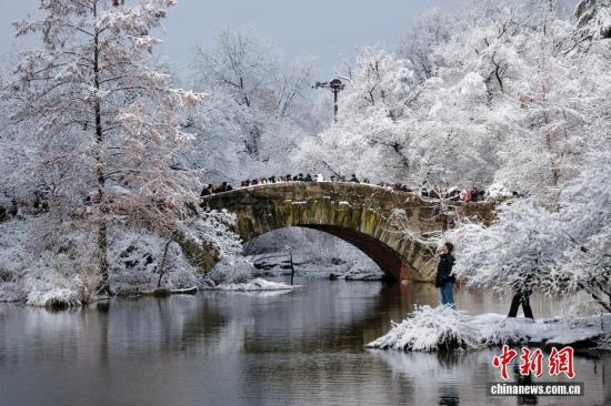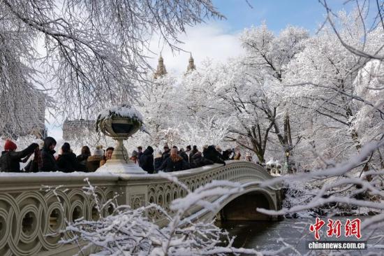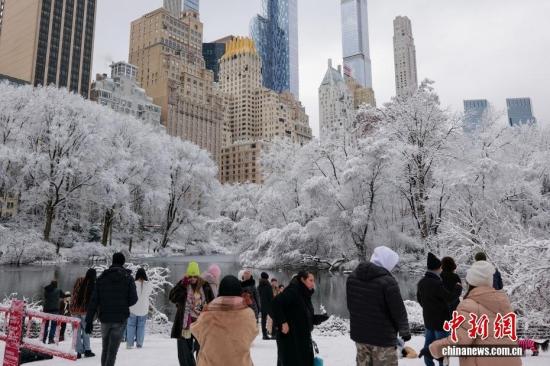 当地时间12月14日,美国纽约迎来今冬首场大雪,民众走进中央公园欣赏雪后美景,享受冬日乐趣。中新社记者 王帆 摄