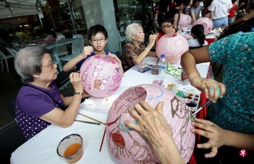 新加坡唐人街迎中秋 各族老幼绘灯笼传承中华文化