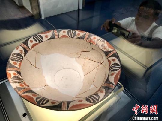 他介绍说,中国史前彩陶的风格,在色彩与纹样上,集中体现在红与黑双色显示纹样和二方连续式构图上。绘制彩陶的陶胎一般显色为浅红色,绘彩的显色为黑色,黑红两色对比强烈。有时也会先涂一层白色作地色,黑白两色对比更加鲜明。