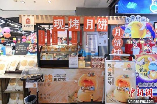 商家推出现烤月饼。 安源 摄
