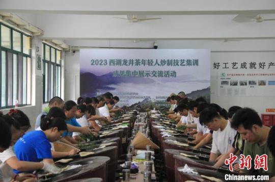 记者了解到,现场参与展示交流活动的40名学员,是在完成2023年西湖龙井茶年轻人炒制技艺集训的基础上,由21个集训点精心选拔的。