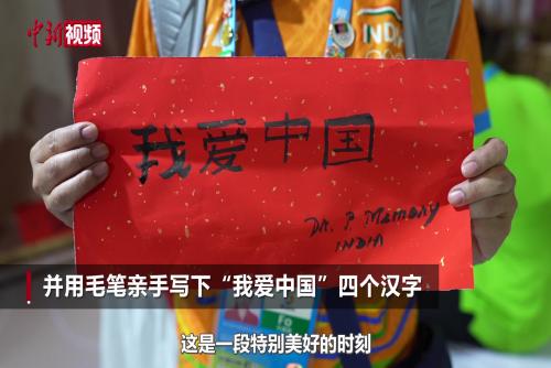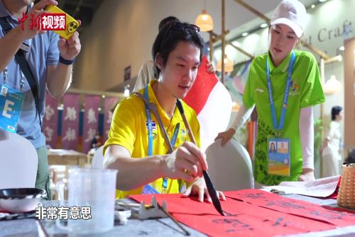 以字传心 印度友人亚沙会非遗展写下“我爱中国”