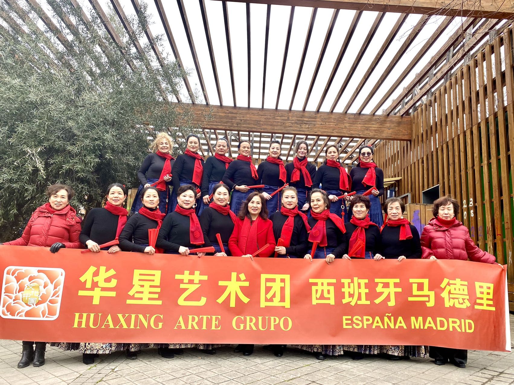 大年初二,早上十点30分,参加新春庙会彩妆游行活动的队伍都已经聚集完毕,十二点整,2024新春庙会彩妆大游行准时拉开序幕。在彩妆游行的队伍中,伴随着音乐的旋律,马德里华星艺术团折扇表演方队闪亮登场,她们一个个精神抖擞,身着传统马面裙服饰,手拿红色折扇,一路上边走边表演,欢呼声和掌声此起彼伏。