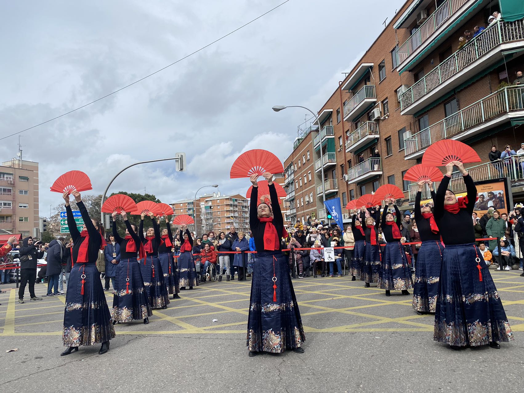 马德里Usera区是中国侨民居住最密集的地方,也是西班牙人心目中的“唐人街”,每年的春节庙会彩妆游行都会吸引众多的市民前往观看。据了解,今年彩妆游行队伍参与人数一千二百多人,约有二十多万市民前来观看。(马德里华星艺术团供稿)
