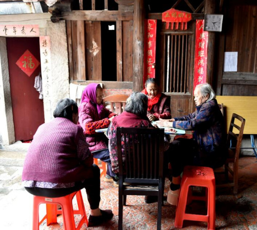 85岁的蔡阿婆,和两三个姐妹伴,每天在古厝里以棋牌为乐。