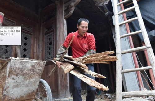 “祖上建立的家业,总不能毁在我手里。”林钢潮是林泮水四儿子的后人,大家习惯叫他钢啊。生在这、长在这的钢啊,跟古厝有着割舍不了的感情。“大房屋顶塌了许久,要趁春雨来临之前把它补好。”钢啊搅拌水泥浆,忙着修古厝。
