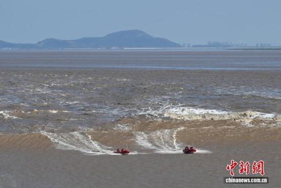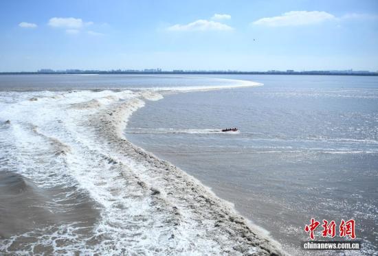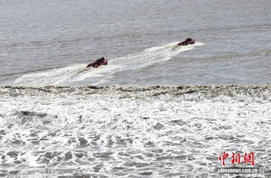 浙江海宁:钱塘江大潮汹涌壮观吸引游客