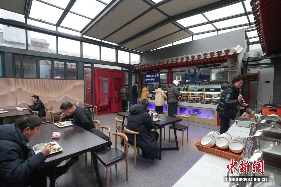 12月18日,市民在北京景山AI食堂就餐。作为首开首院金融产业园的职工食堂,景山AI食堂自对外营业以来吸引了不少市民前来就餐,其核心烹饪环节由AI炒菜机完成。就餐者仅需开通虚拟卡、完成充值和人脸录入,即可体验全程无感取餐。中新社记者 杨郁然 摄