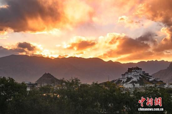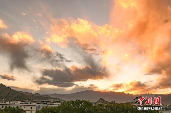 10月23日,西藏拉萨上空出现绚丽晚霞。