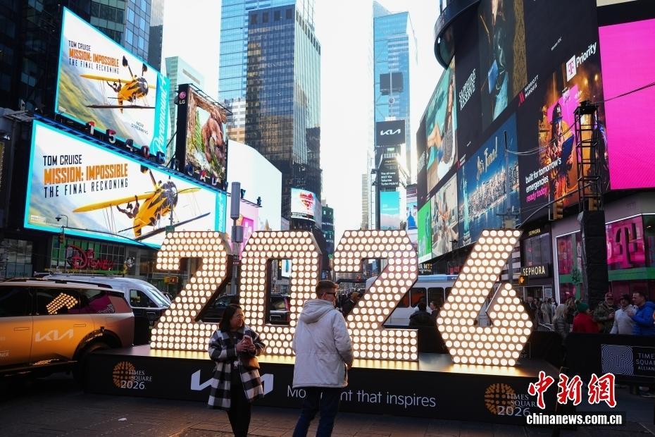 巨型数字灯“2026”亮相纽约时报广场