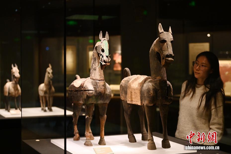 12月24日,在位于兰州的甘肃省博物馆丝绸之路文明展厅内,游客参观汉代彩绘木马。作为中华民族和中华文明的重要发祥地之一,甘肃是古丝绸之路的重要通道,遗留下来诸多以马为主题的珍贵文物,真实再现了丝绸之路上的商贸繁荣与文化交融。中新社记者 九美旦增 摄