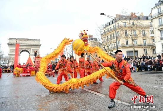 巴黎香榭丽舍大街舞龙舞狮迎新春