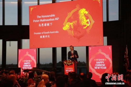 当地时间2月12日晚,中国驻阿德莱德总领馆与南澳州政府共同举办庆祝2026中国春节晚宴。中新社记者 薄雯雯 摄