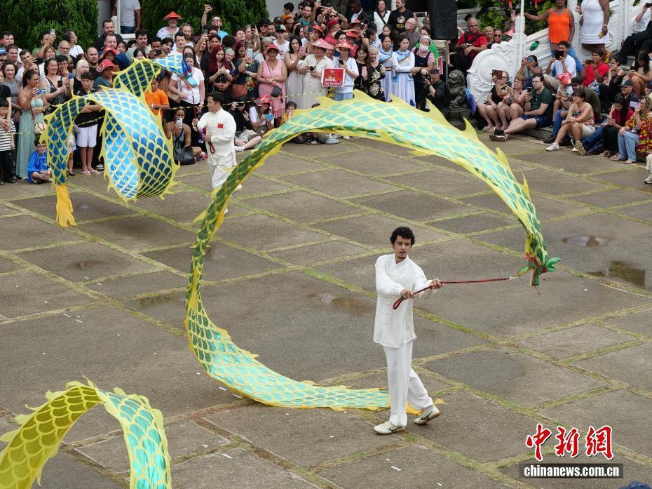 当地时间2月22日,巴西佛光山如来寺(TemploZuLai)举办万人新年庆典活动,巴西圣保罗北京文化交流协会、圣保罗华星艺术团、巴西坎皮纳斯州立大学孔子学院和巴西圣保罗太极功夫班共襄盛举。活动吸引逾两万中巴游客香客参与,共同欣赏中华传统文化演出,为家人、社区和世界祈愿和平与繁荣。如来寺坐落于圣保罗州科蒂亚市(Cotia),是由星云大师创办的拉丁美洲最大佛教寺院,占地约2020万平方米。图为圣保罗华星艺术团表演民间舞。