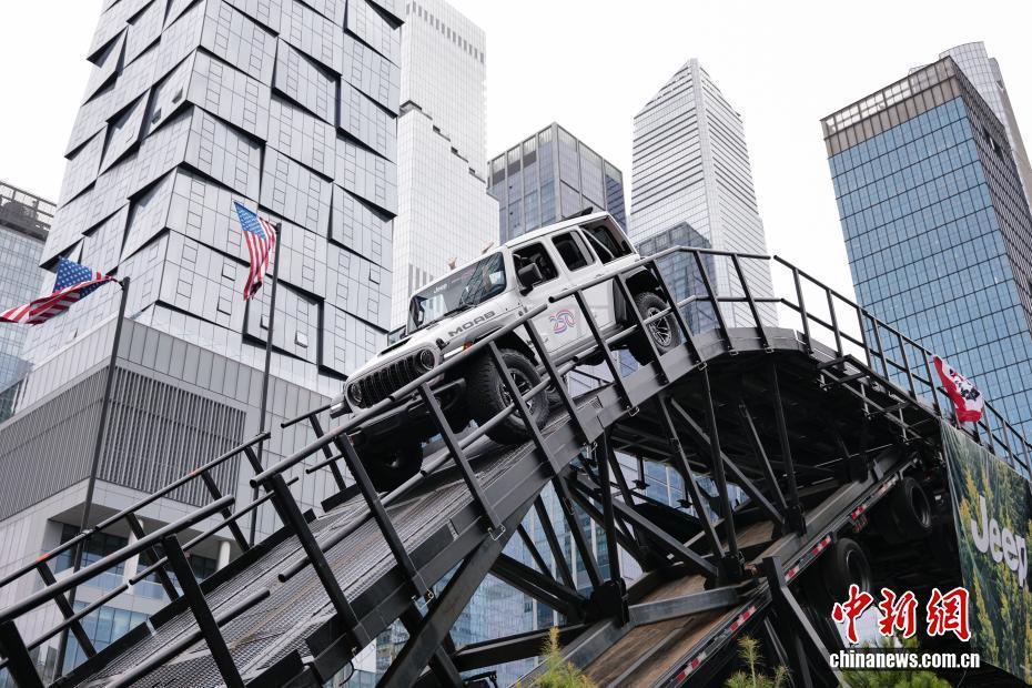 当地时间4月1日,2026年纽约国际车展在美国纽约贾维茨会展中心启幕,展出来自全球数十家车企的700多款车型。图为人们体验吉普汽车的越野性能。 中新社记者 王帆 摄