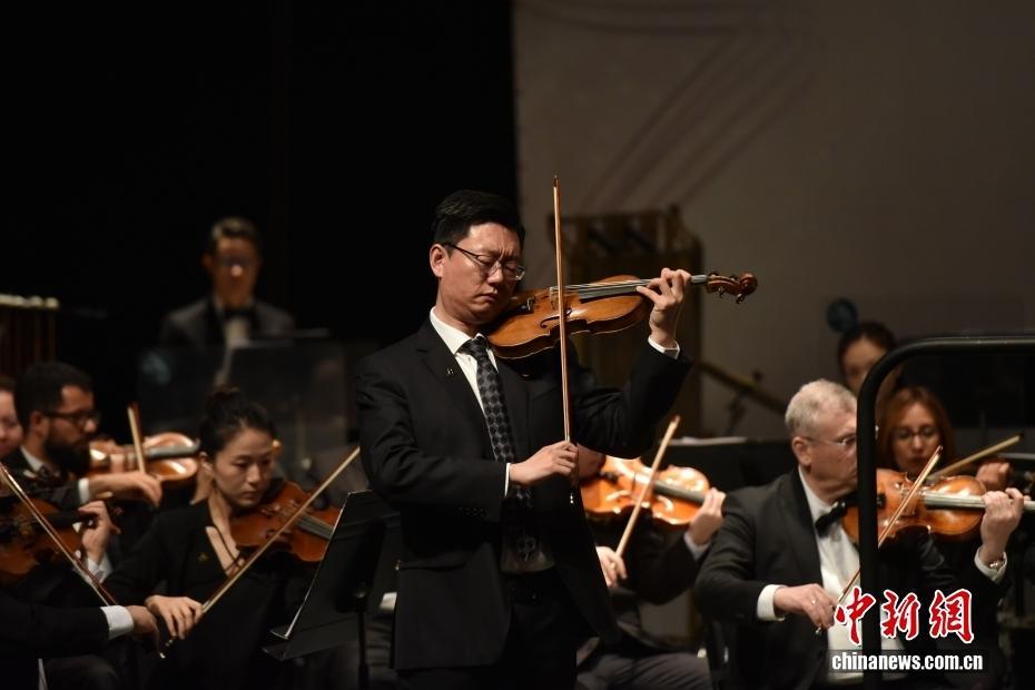 当地时间4月7日晚,作为2026“中巴文化年”重要活动之一,中国交响乐团和巴西克劳迪奥·桑托罗国家剧院交响乐团同台共演的“中巴文化年”专场音乐会在巴西首都巴西利亚举行。图为中国交响乐团小提琴名家姚亮演奏《梁祝》。